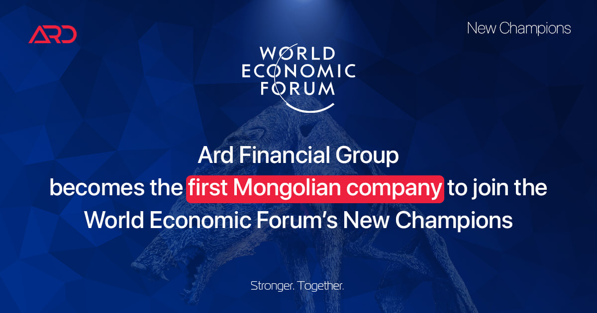Ard Financial Group JSC was invited as a member of the World Economic Forum's New Champions, becoming the first Mongolian company to join the community.
