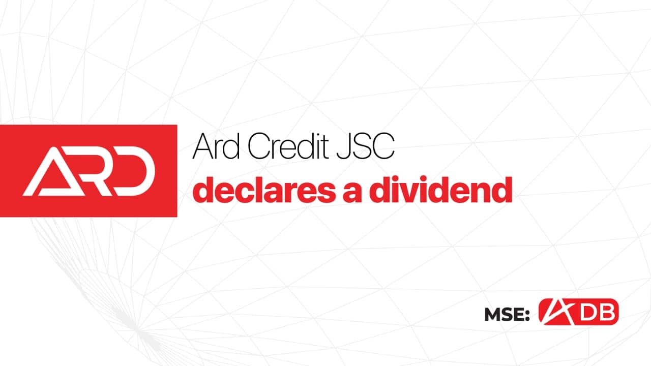 Ulaanbaatar, Mongolia - February 13, 2021 - The Board of Directors of Ard Credit NBFI JSC (MSE:ADB) has decided to allocate MNT1 billion or 49.79 percent of the company’s net profit in 2020 as dividends to its shareholders.