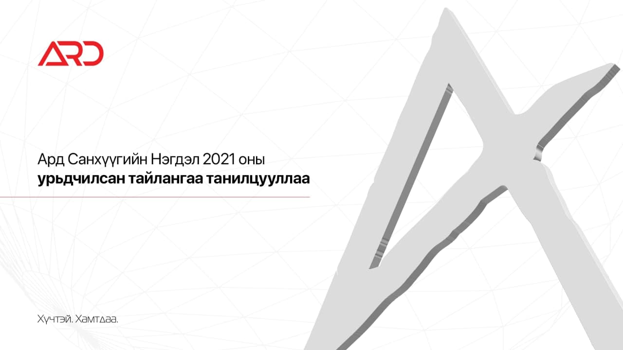 Ард Санхүүгийн Нэгдлээс 2021 оны үйл ажиллагаа, санхүүгийн тайлангаа 2 сарын 15-нд танилцууллаа. Хөрөнгө Оруулагч Үндэстэнг цогцлоох эрхэм зорилготой манай компанийн хувьд өнгөрсөн 1 жилийн хугацаанд охин компаниуд болон ажиллагсад, хувьцаа эзэмшигчдийн тоо хэд дахин нэмэгдсэн түүхэн жил болж өнгөрлөө.