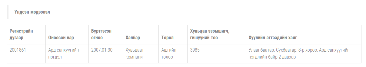 Ард Санхүүгийн Нэгдэл ХК нь 2012 оны 1 сарын 25-нд хөрөнгө оруулалт хийж, Улсын Бүртгэлд бүртгүүлснийг хуулийн этгээдийн нээлттэй мэдээллээс авч болно. Номын Хишиг ХХК-ийн өмч болох “Улаанбаатар хот, Сүхбаатар, 8-р хороо, Ерөнхий сайд Амарын гудамж-2” хаяг дээрх үл хөдлөх эд хөрөнгийн хууль ёсны эзэмшигч нь Ард Санхүүгийн Нэгдэл мөн болно. Өнөөдрийг хүртэл дээрх хаяг нь Ард Санхүүгийн Нэгдлийн албан ёсны хаяг мөн бөгөөд бид өнгөрсөн хугацаанд Номын Хишиг ХХК-ийн төрийн болон бусад байгууллагын өмнө хүлээсэн санхүүгийн зарим үүрэг болон тус үл хөдлөх хөрөнгийн урсгал зардал, засан сайжруулалтыг хариуцаж ирсэн бөгөөд хамтран хөрөнгө оруулагч талтай маргаантай байгаа болно.