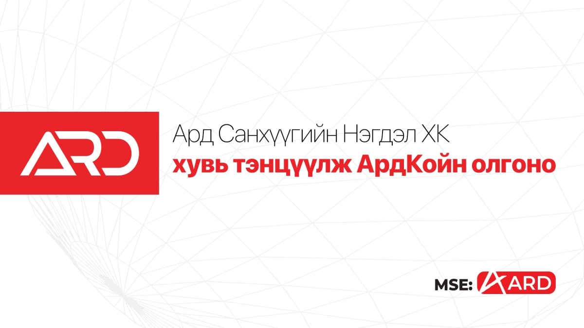 Улаанбаатар хот, Монгол Улс, 2021-2-15 - Ард Санхүүгийн Нэгдэл ХК (MSE:AARD) 2020 оны үйл ажиллагаа болон санхүүгийн үр дүн, дэлхий даяар явагдаж байгаа цахим шилжилт, Монголын төр засгаас хэрэгжүүлж буй бодлого болон манай хувьцаа эзэмшигчдийн хүсэлтийг харгалзан үзэж нийт 28.6 сая АрдКойныг хувьцаа эзэмшигчиддээ хувь тэнцүүлж хуваарилахаар шийдвэрлэлээ. Компанийн 2020 оны тайлангийн хурлын өдрийг бүртгэлийн өдөр болгож нэгж хувьцаанд 1.0 АрдКойн оногдуулах юм. Ард нь анх АрдКойныг зах зээл дээр нэвтрүүлж эхэлж байхад ийм байдлаар 2019 онд нийт АрдКойны нийлүүлэлтийн 20 шахам хувь буюу 1 тэрбум АрдКойныг өөрийн хувьцаа эзэмшигчиддээ хуваарилж байсан.